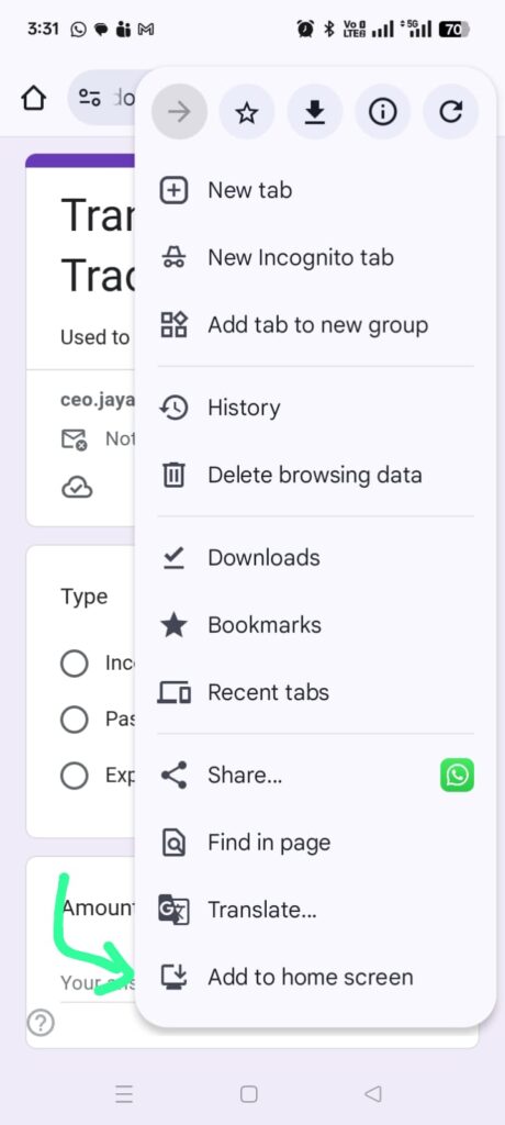 You don't require to be present Infront your laptop or a computer. Just visit the google form URL that you have generated through mobile device and add it to the home screen. You can access and add the expense details easily from the mobile itself.