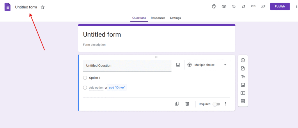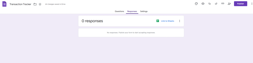 Visit https://forms.google,com and create Blank Form. You will reach the below page with Untitled form. Make sure you rename the form something like the Transaction Tracker
