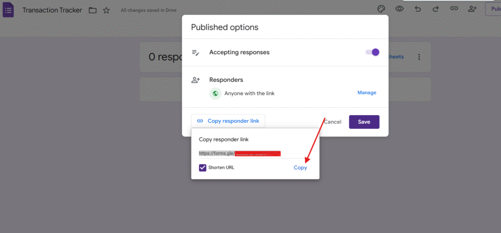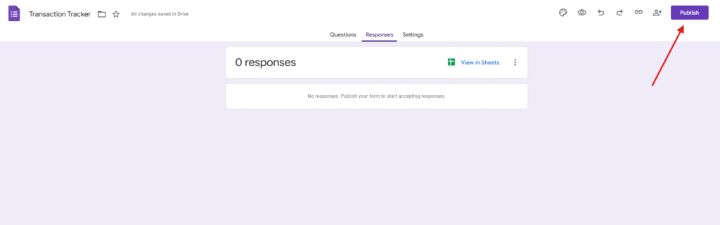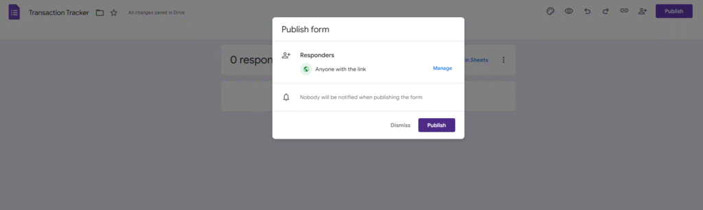 Go back to the google form and click on Publish.
